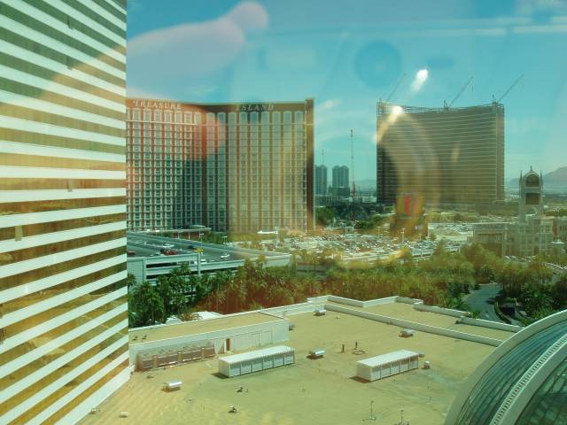 View out of the hotel window. See the TI hotel, and a new one under contruction, the Wynn.